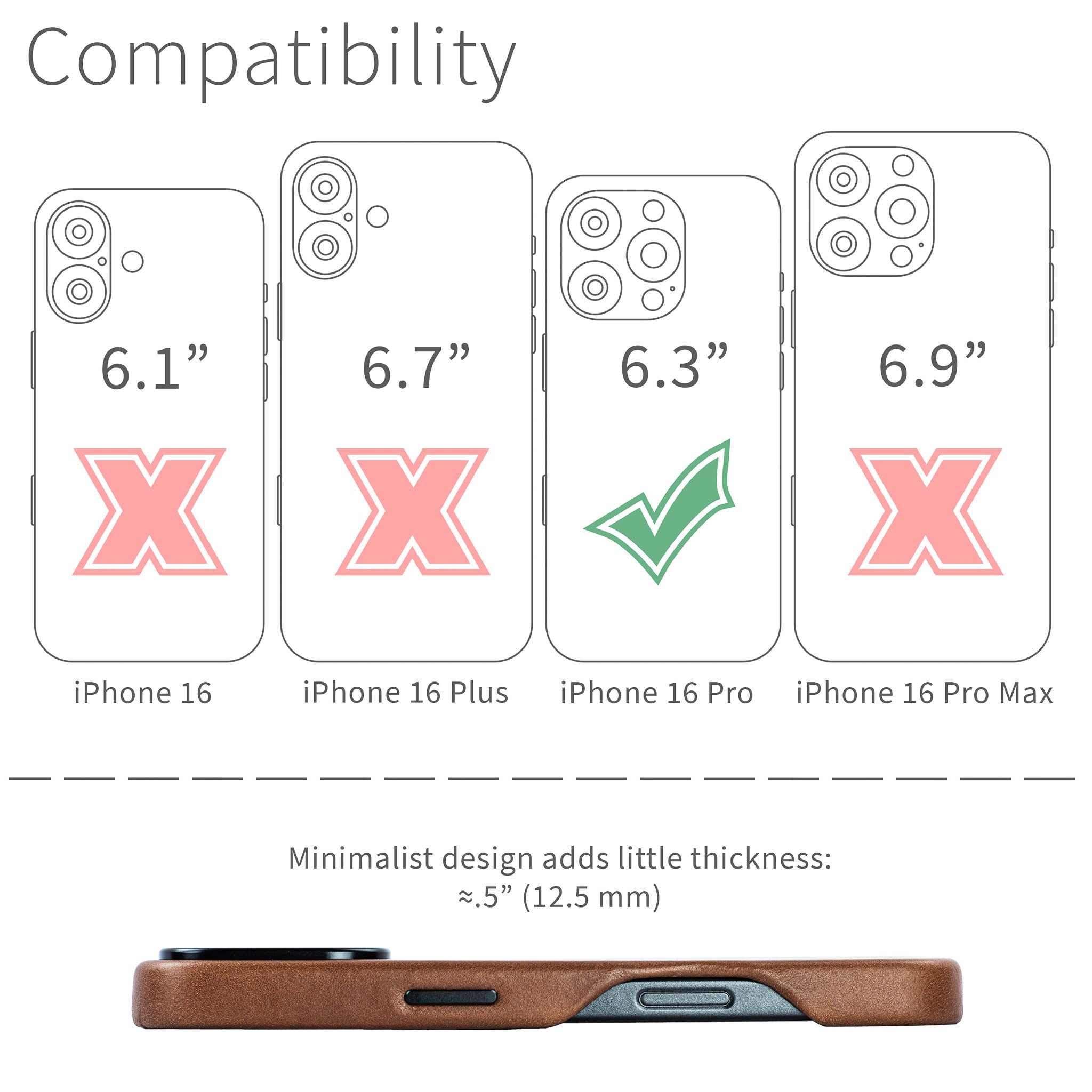 Slim Genuine Leather Case for iPhone 16 Pro – Brown – MSGL V2